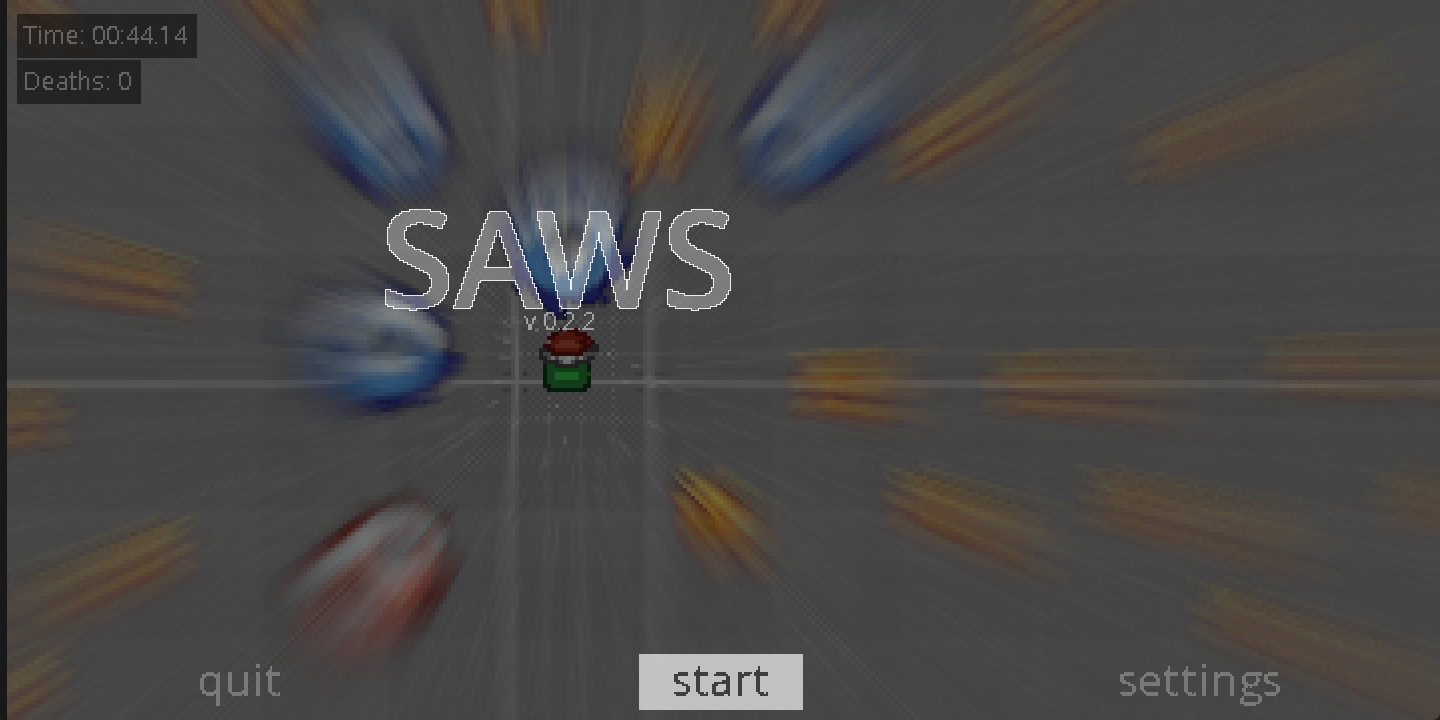 There is a variety of SAWS, like the red one, that starts going down-right and bounces on every wall it touches; or the blue one, that just stays on its place; even the orange too, which slides linearly! It's a lot of SAWS to dodge!